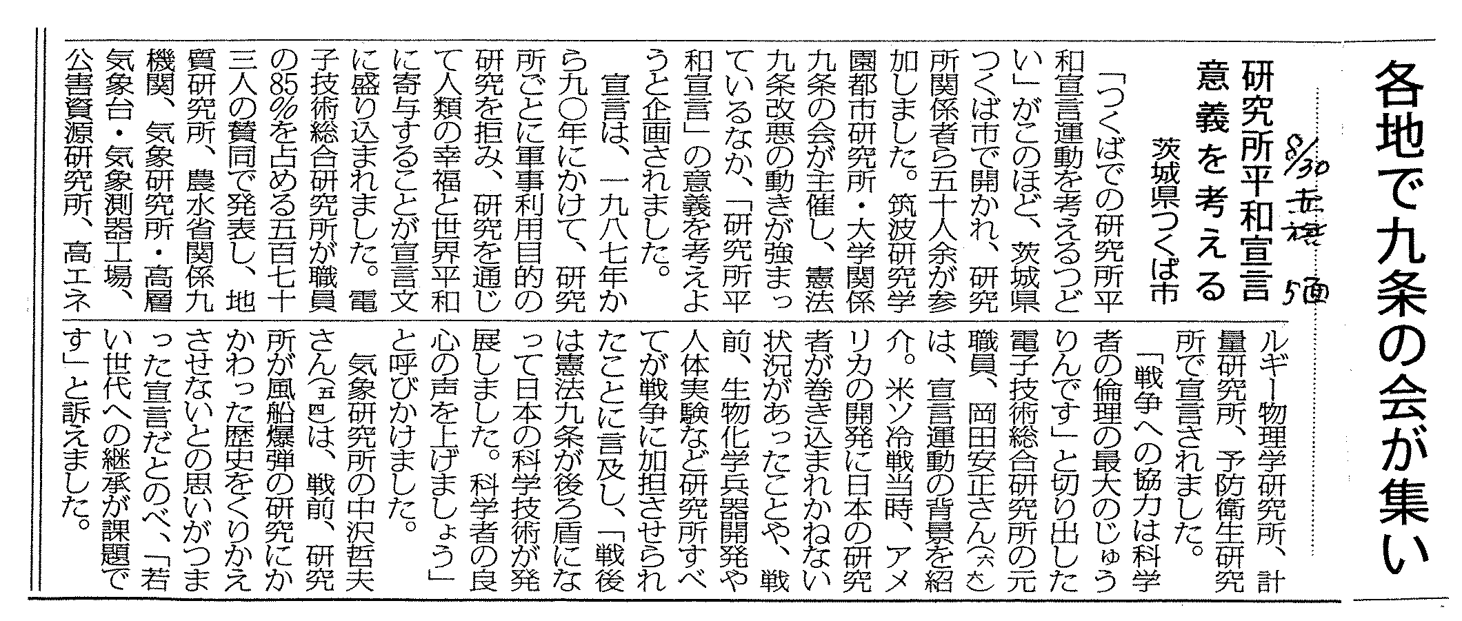 筑波研究学園都市研究所・大学関係9条の会 世話人会